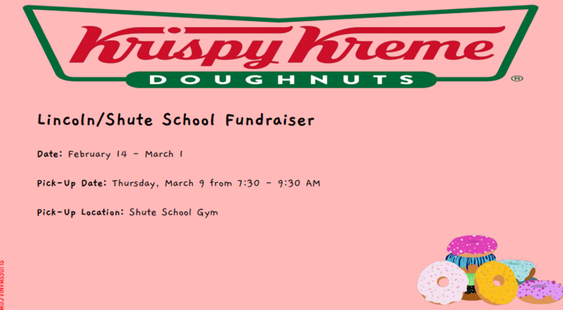 FUNDRAISER ALERT!!! Our Krispy Kreme fundraiser begins today and runs until March 1. The pickup date from Shute school is Thursday, March 9th from 7:30 am- 9:30 am.